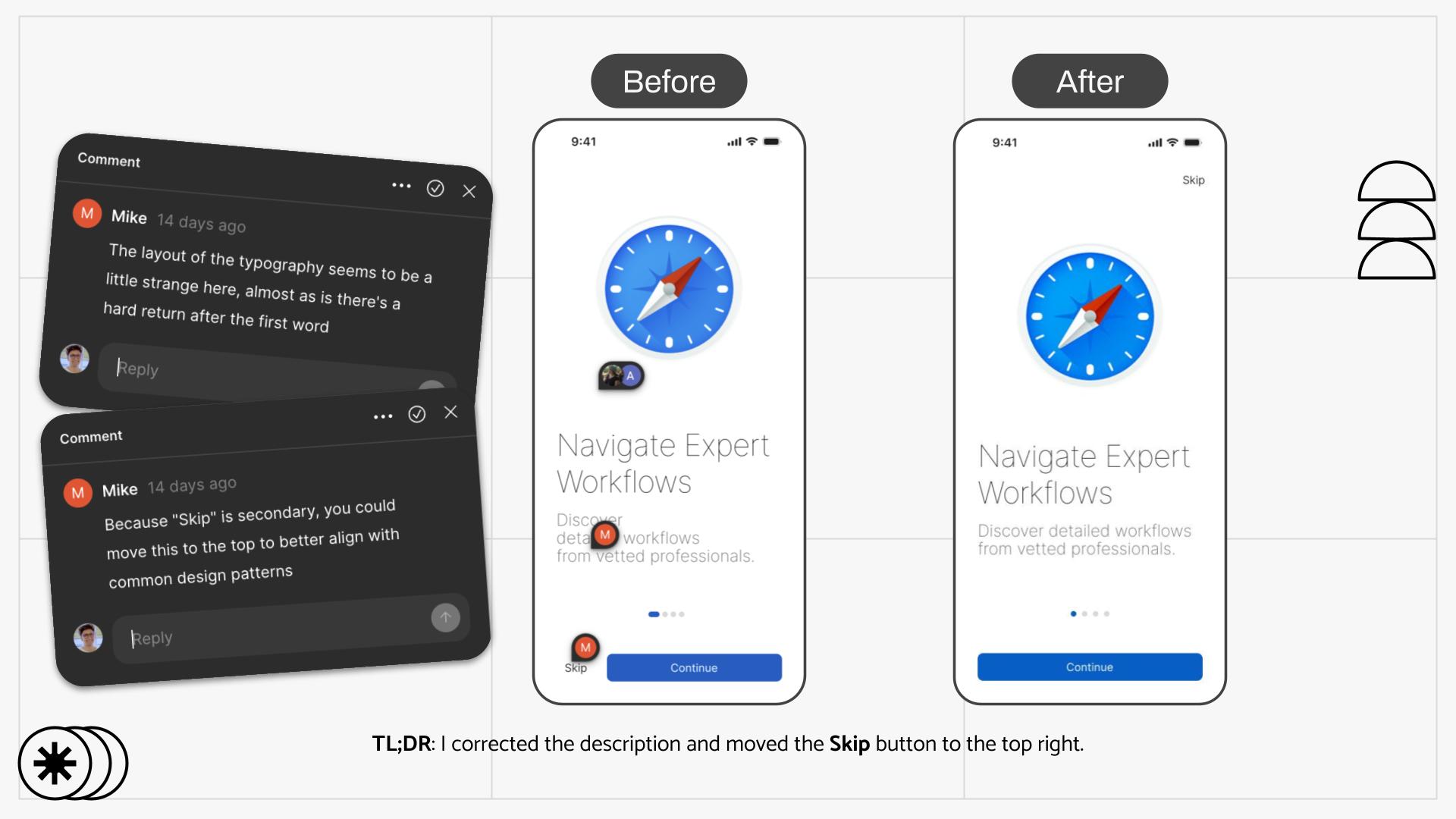 Design Comparison Before and After Internal Feedback