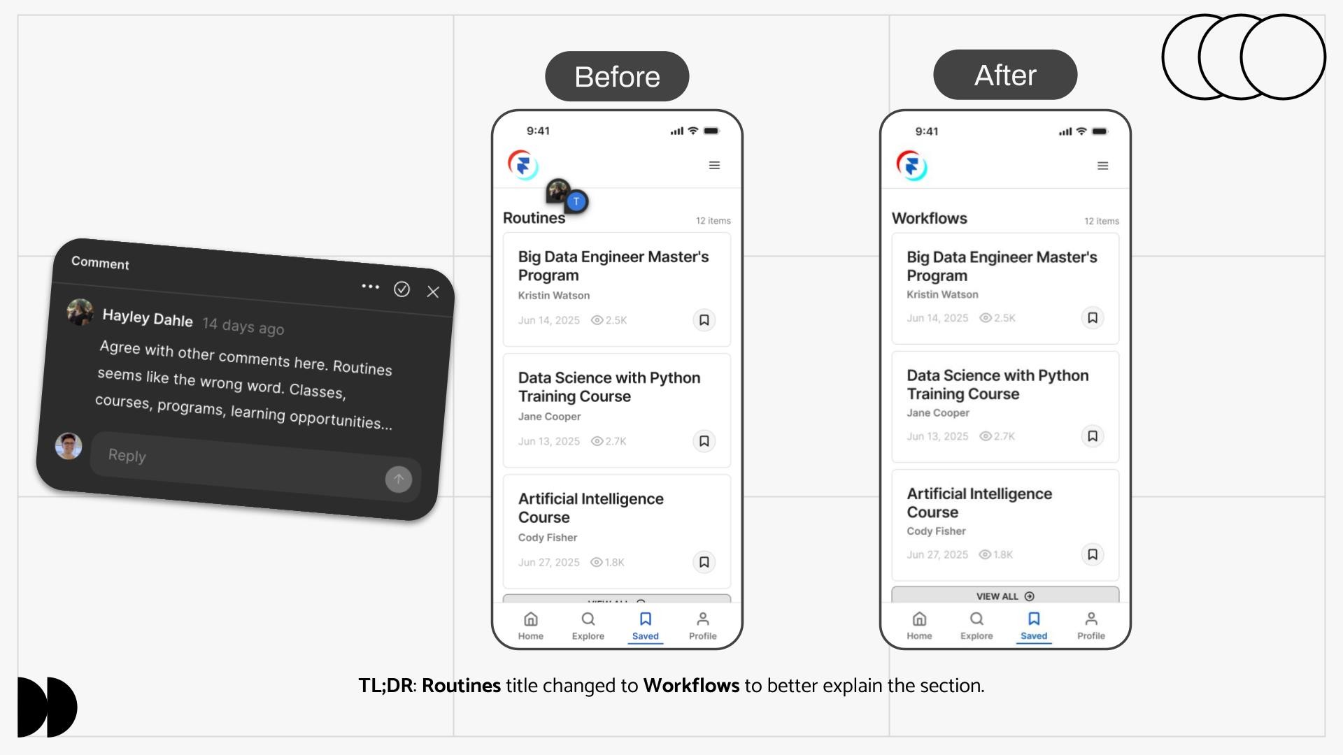 This quote from a participant trying to find his saved content was a powerful reminder that my initial navigation design was not as intuitive as I had assumed. To solve this, I iterated on the design by adding a clear text label to the navigation bar.
